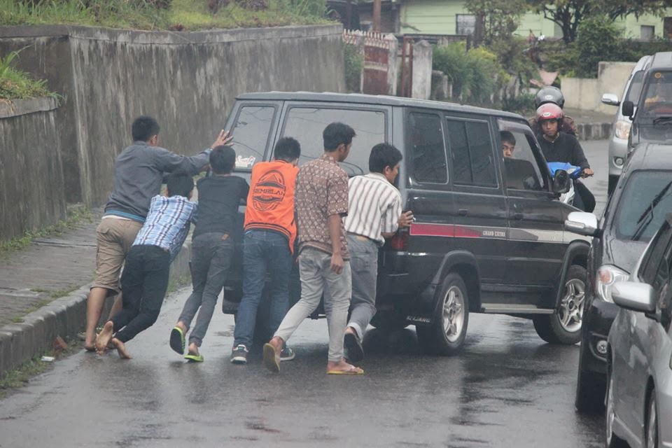 mogok , tapi teman teman saya yang baik hatinya rela membantu mendorong